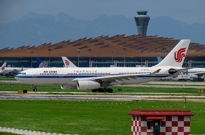 Airbus A330-200 společnosti Air China na letišti v Pekingu na letu do Čcheng-tu, červenec 2018 (autor: N509FZ, Wikimedia Commons, CC-BY-SA-4.0)