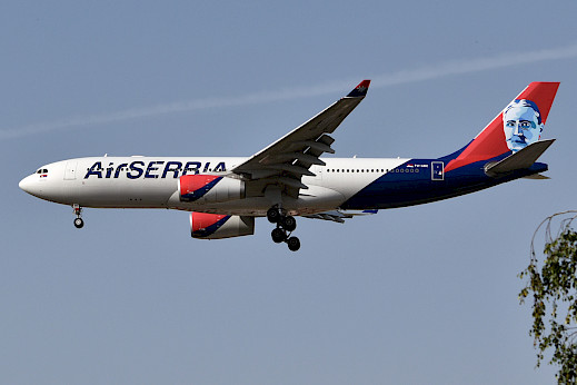 Airbus A330-200 společnosti Air Serbia, červen 2024 (autor: Anna Zvereva, Wikimedia Commons, CC-BY-SA-4.0)