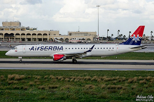Embraer E195 společnosti Air Serbia, leden 2024 (autor: Adrian Cilia, Wikimedia Commons, CC-BY-2.0)