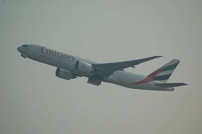 nákladní Boeing 777F společnosti Emirates na lince Hong Kong - Dubaj, listopad 2009 (autor: Alec Wilson, Wikimedia Commons, CC-BY-SA-2.0)