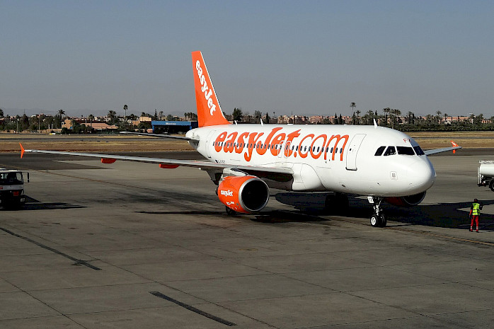 Airbus A319 společnosti easyJet na letišti v Marrakéši, červenec 2014 (autor: Eric Salard, Wikimedia Commons, CC-BY-SA-2.0)