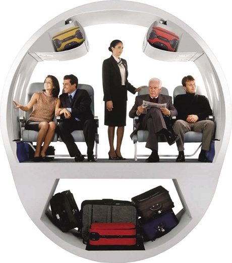 Příčný průřez kabinou odhaluje zvolenou koncepci, která poskytuje dostatek prostoru v kabině cestujících. (Foto: Embraer)