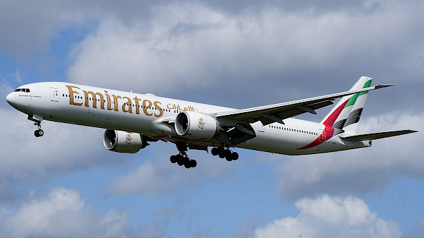 Boeing 777-300ER společnosti Emirates, duben 2024 (autor: MarcelX42, Wikimedia Commons, CC-BY-SA-4.0)