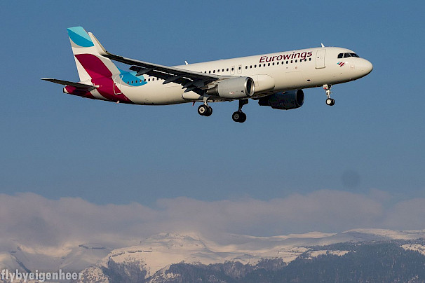 Airbus A320 společnosti Eurowings s registrací D-AEWA přistává na letišti v Ženevě, březen 2016 (autor: Markus Eigenheer, Wikimedia Commons, CC-BY-SA-2.0)
