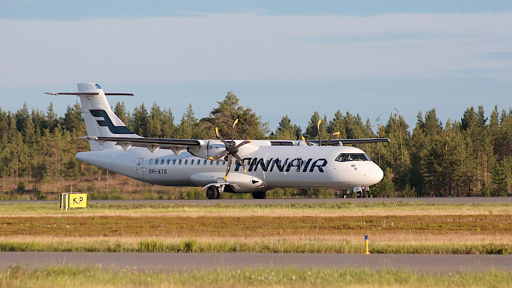 ATR 72-500 společnosti Nordic Regional Airlines, dceřiné společnosti Finnairu, na letišti v Oulu, červenec 2023 (autor: Estormiz, Wikimedia Commons, CC-zero)