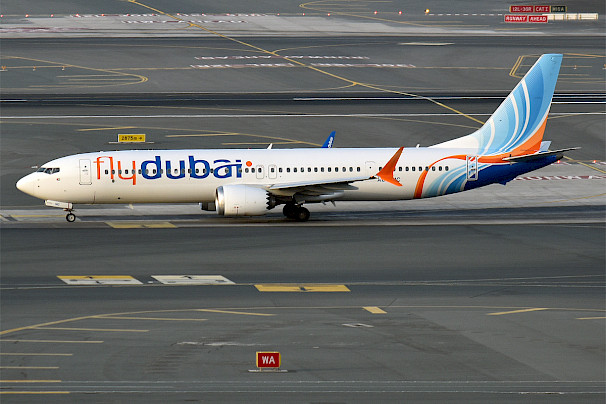 Boeing 737 MAX 9 společnosti Flydubai, březen 2022 (autor: Anna Zvereva, Wikimedia Commons, CC-BY-SA-2.0)