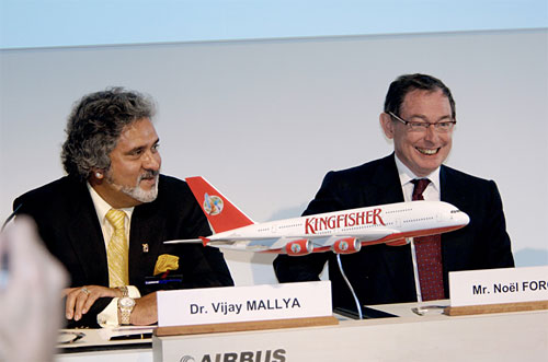 Vijay Mallya z Kingfisher Airlines a Noël Forgeard z Airbus SAS.