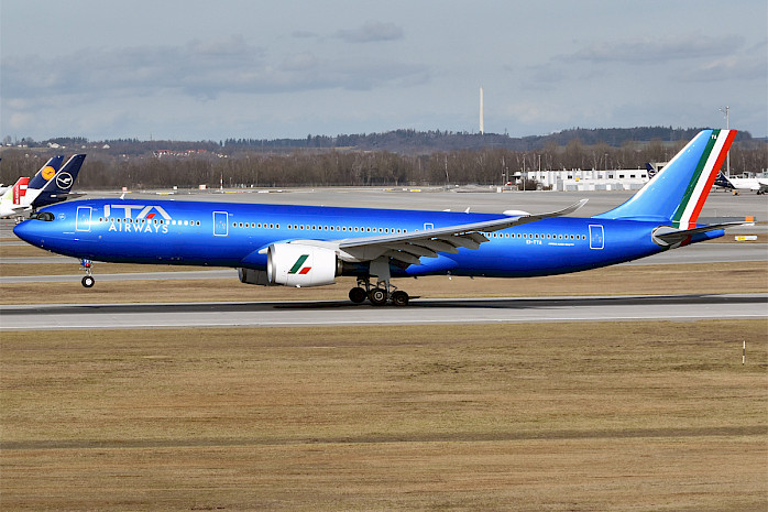 Airbus A330-900neo společnosti ITA Airways na letišti v Mnichově, únor 2024 (autor: Anna Zvereva, Wikimedia Commons, CC-BY-SA-4.0)