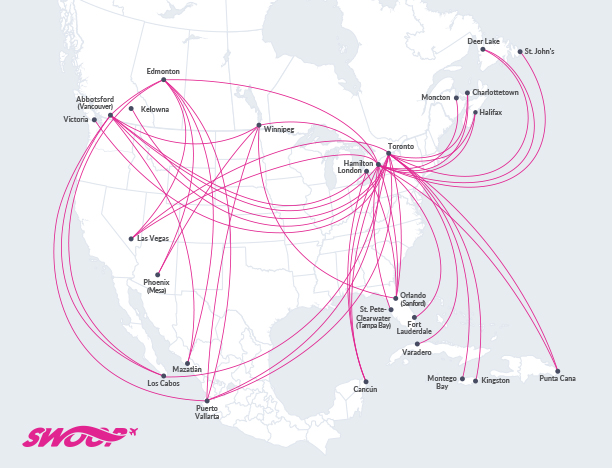 Aktuální mapa linek společnosti Swoop (zdroj: Swoop)