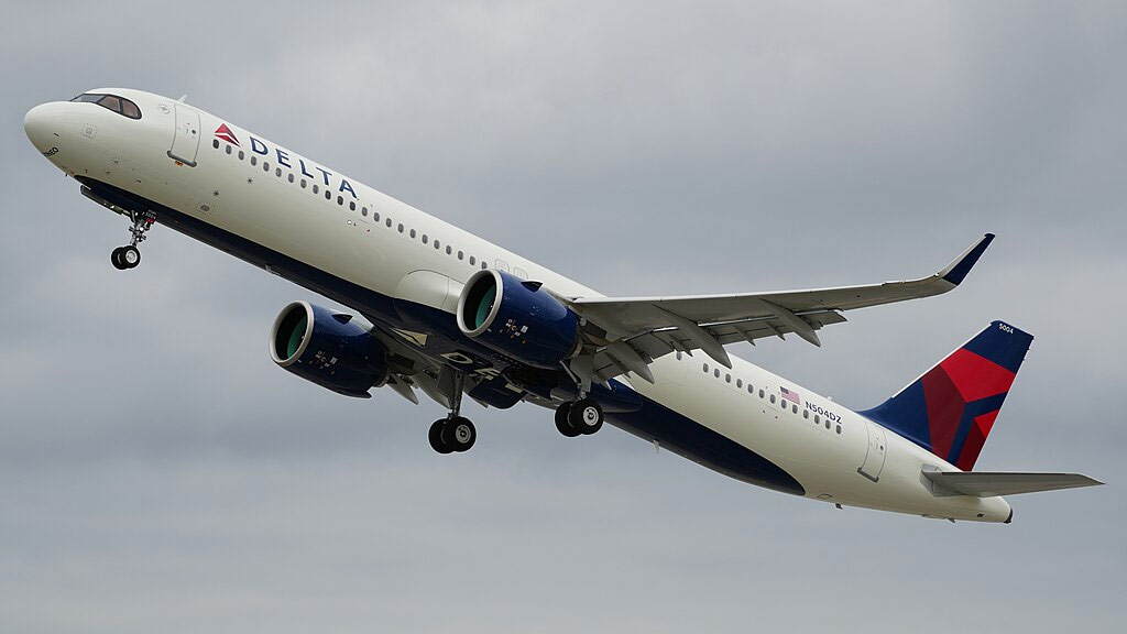 Airbus A321neo americké společnosti Delta Air Lines startuje z továrního letiště Airbusu ve Finkenwerderu u Hamburku (foto: MarcelX42/Wikimedia Commons - CC BY-SA 4.0)