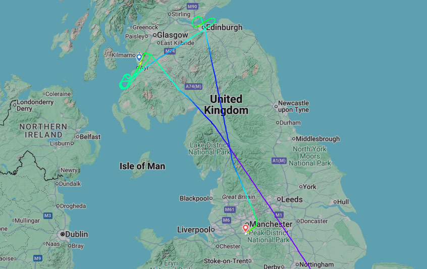 Celý let z Pisy do Glasgow má podle letového řádu trvat dvě hodiny a 30 minut, ve skutečnosti jej letadlo zvládne zhruba za dvě hodiny. Tento let se protáhl jednou tolik, letadlo přistálo v Manchesteru až po čtyřech hodinách a 23 minutách.