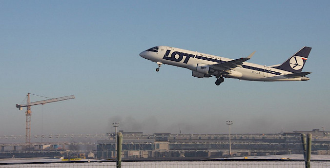 Embraer E175 společnosti LOT vzlétá z letiště v Gdaňsku, leden 2021 (autor: Łukasz Golowanow, konflikty.pl, Wikimedia Commons, attribution only license)