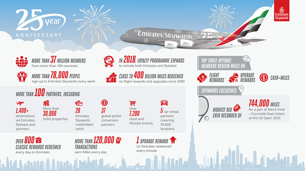 Infografika Emirates k 25 letům programu Skywards (foto: Emirates)