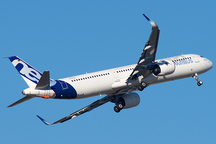 testovací let prototypu letadla Airbus A321neo, září 2016 (autor: BriYYZ, Wikimedia Commons
