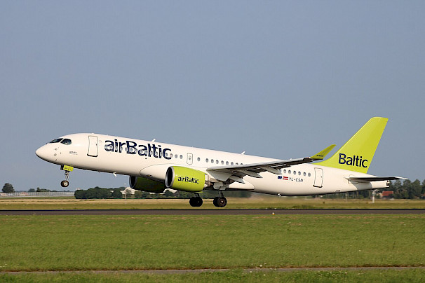 Airbus A220-300 společnosti airBaltic, červenec 2021 (autor: jounigripen , Wikimedia Commons, CC-BY-SA-2.0)