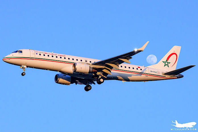 Embraer E190 společnosti Royal Air Maroc, březen 2023 (autor: Mitchell R Hope, Wikimedia Commons, CC-BY-SA-2.0)