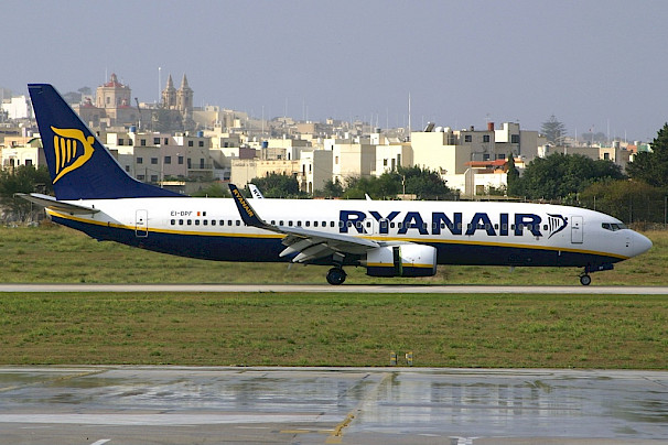 Boeing 737-800 společnosti Ryanair na letišti Luqa na Maltě, říjen 2007 (autor: Peter Bakema, Wikimedia Commons, GFDL-1.2)