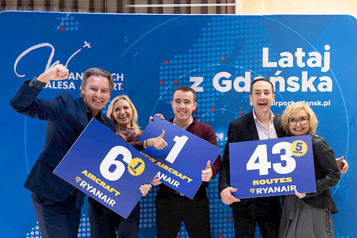 foto Ryanairu k příležitosti oznámení šestého letadla a pěti nových destinací z Gdaňsku (zdroj: media kit společnosti)