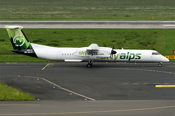 De Havilland Canada Dash 8-400 společnosti Sky Alps, květen 2024 (autor: Anna Zvereva, Wikimedia Commons, CC-BY-SA-2.0)