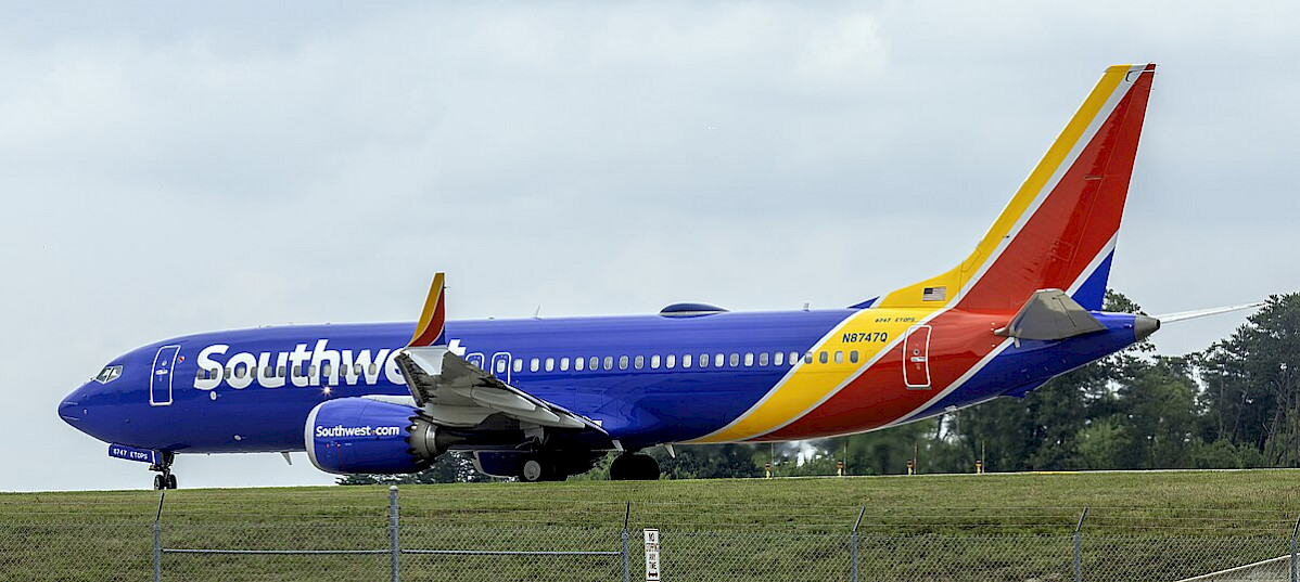 Boeing 737 MAX 8 společnosti Southwest Airlines, červenec 2024 (autor: Acroterion, Wikimedia Commons, CC-BY-SA-4.0)