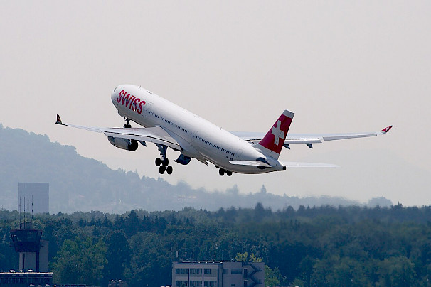 Airbus A330-300 společnosti SWISS odlétá z letiště Curych, srpen 2015 (autor: Norbert Aepli, Wikimedia Commons, CC-BY-3.0)