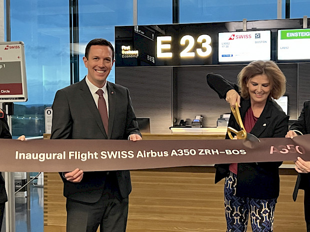 Letecká společnost Swiss International Air Lines včera poprvé nasadila svůj první Airbus A350-900 s registrací HB-IFA na dálkovou linku. Jedná se o spoj z Curychu do Bostonu. Swiss o tom informuje ve své včerejší tiskové zprávě.