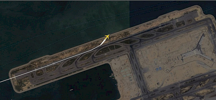 Zástupci letiště uvedli, že letadlu dali správné pokyny a že na přistávací dráze jsou značky, které letadla navádějí. Výkonný ředitel letiště Steven Yiu uvedl, že hlídkové vozidlo v danou chvíli jelo po silnici mimo oplocení přistávací dráhy „v bezpečné vzdálenosti od přistávací dráhy“. Letadlo se poté odklonilo od dráhy, prorazilo oplocení a srazilo se s vozidlem, které vtlačilo do moře, vysvětlil pan Yiu. Zdůraznil, že auto „rozhodně nevyjelo na dráhu“. „Normálně by letadlo nemělo odbočit směrem k moři,“ uvedl na tiskové konferenci několik hodin po incidentu a dodal, že letadlo při přistání nevyslalo nouzový signál.