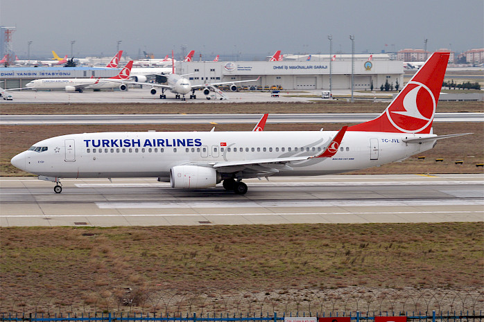 Boeing 737-800 společnosti Turkish Airlines na základně v Istanbulu, prosinec 2016 (autor: Anna Zvereva, Wikimedia Commons, CC-BY-SA-2.0)