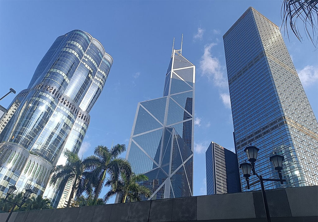 Mrakodrap Bank of China (uprostřed) v Hongkongu (foto: BasieeG MIEE/Wikimedia Commons - CC0)