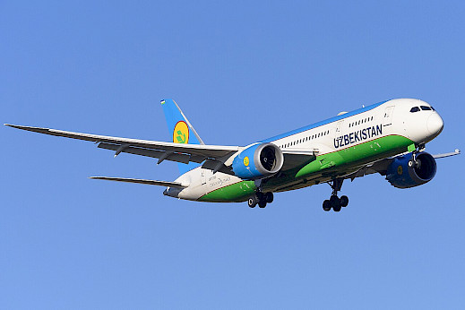 Boeing 787-8 společnosti Uzbekistan Airways, listopad 2022 (autor: N509FZ, Wikimedia Commons, CC-BY-SA-4.0)