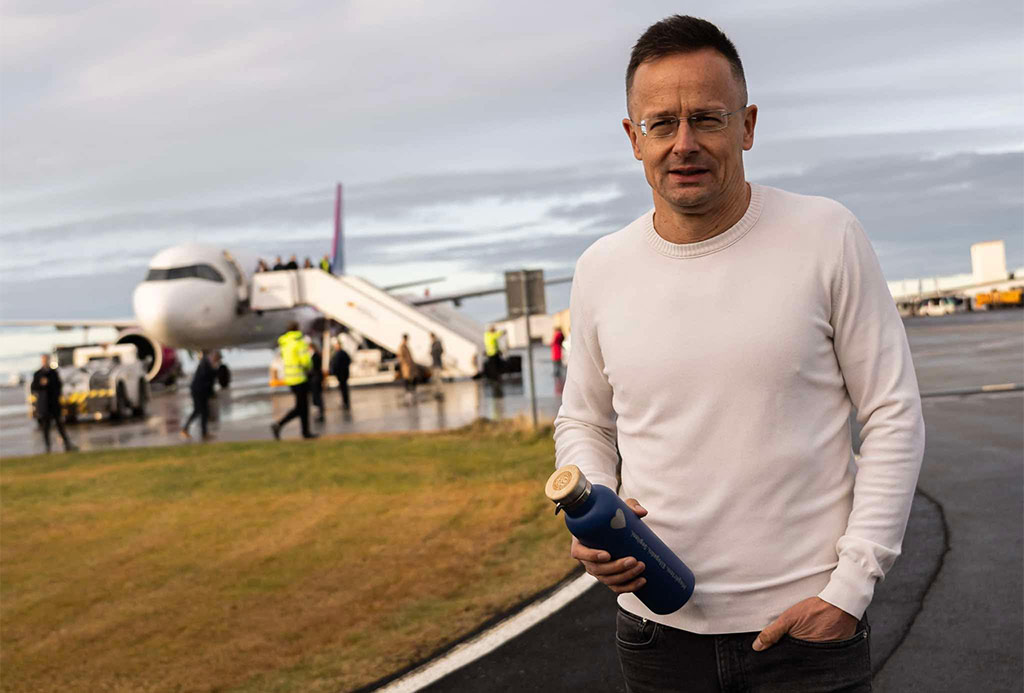 Maďarský ministr zahraničních věcí Péter Szijjártó během mezipřistání A321XLR na Islandu (foto: Szijjártó Péter/Facebook)