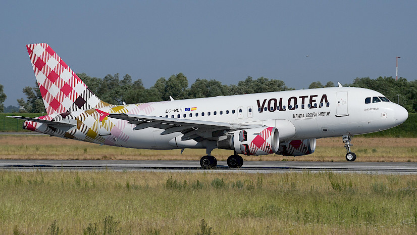 Airbus A319 společnosti Volotea na letišti v Hamburku, červen 2023 (autor: MarcelX42, Wikimedia Commons, CC-BY-SA-4.0)
