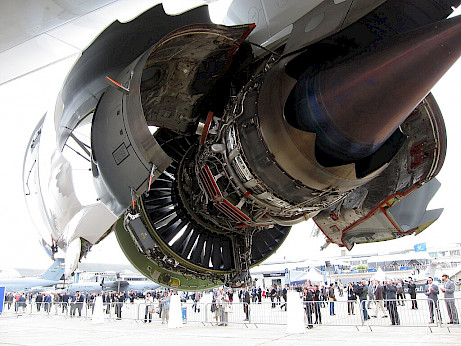 motor GEnX namontovaný na prototypu letadla Boeing 747-800, červen 2011 (autor: Olivier Cleynen, Wikimedia Commons, CC-BY-SA-3.0)